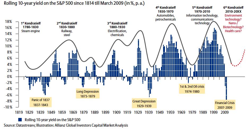 In economics these waves of progress and decline - that are said to last for 60 years at a time - are known as Kondratieff Waves, named after Russian economist Nikolai Kondratieff.