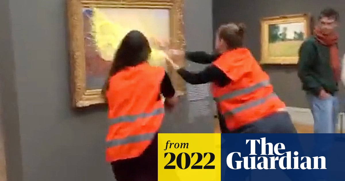 They purposefully deface famous artworks to draw attention to the idea 'that should nothing be done about the crisis of climate inaction - then beautiful paintings will be worthless in a future world where people are fighting for basic survival'.