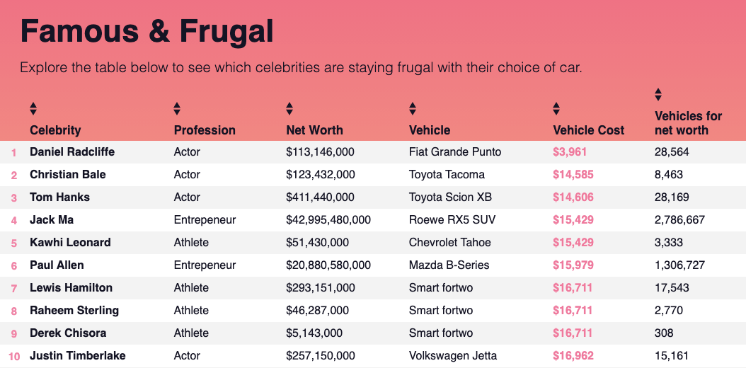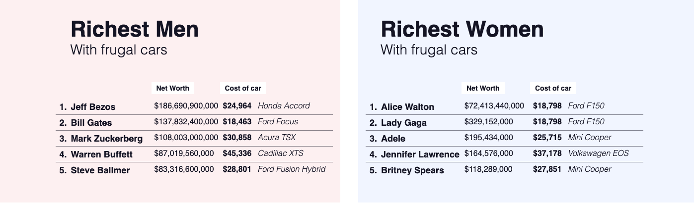 In fact, Bezos is not an outlier in this regard, a number of very wealthy individuals choose to drive very cheap and cheerful cars.