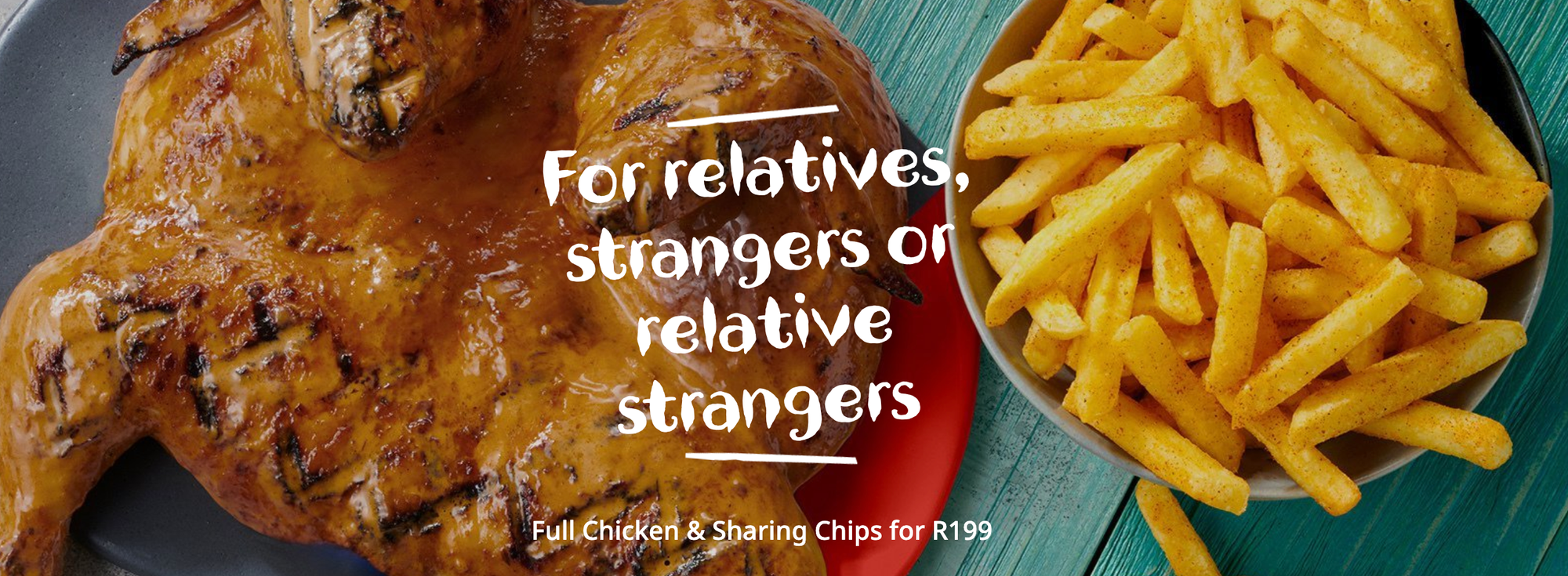 And not satisfied with just being there for our general bemusement, they have shrewdly coupled this laugh-a-minute 45-second TVC with a related promotional drive (for a full chicken and chips to share for R199).