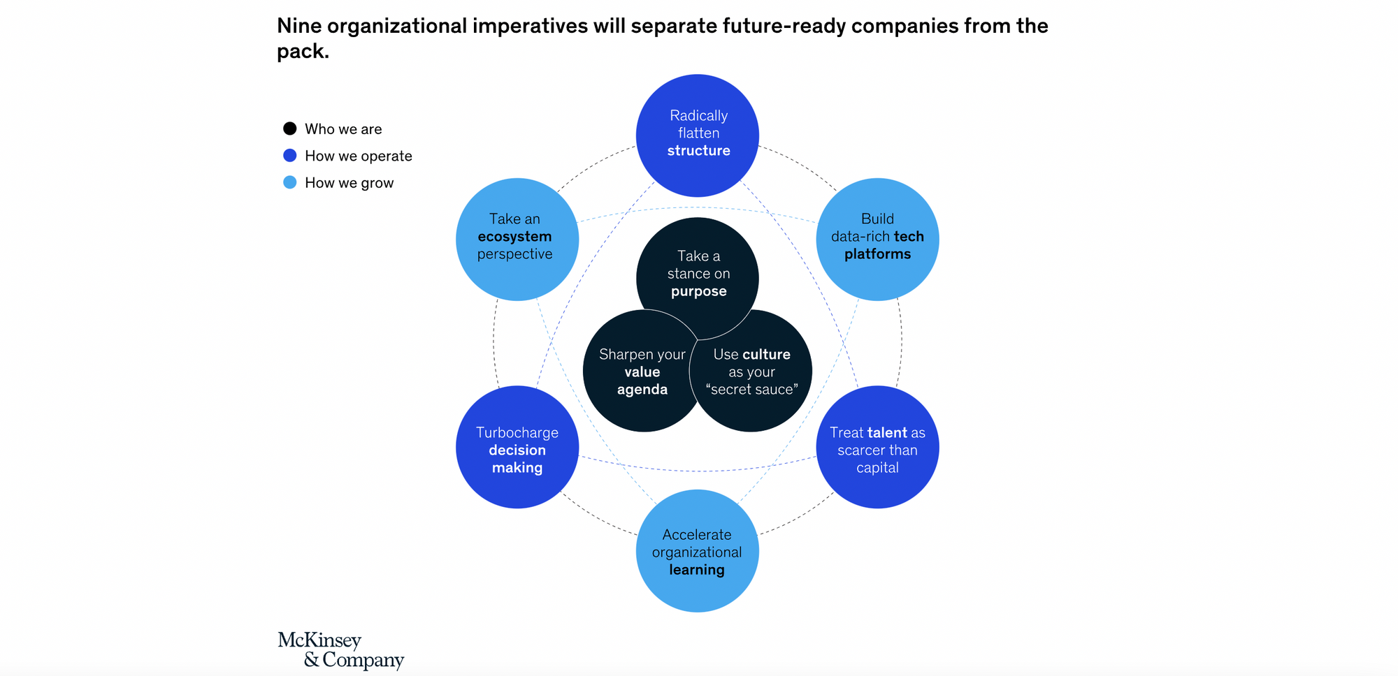 In the research that they have conducted with their clients, McKinsey published an article highlighting their 9 keys to the future, that they feel are necessary to transform for any organisation to ready itself for the future.