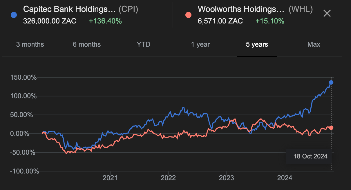 Today we will compare the strategies of two massive South African companies (Capitec and Woolworths) - and we will do so simply by quoting a Sunday World article and a recent post of ours here.