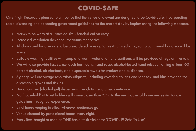 As London's first socially distanced immersive event, One Night Records provides a safe environment to spend a night out with four family members or friends at a time, enjoying once again an evening of live music, food and drink.