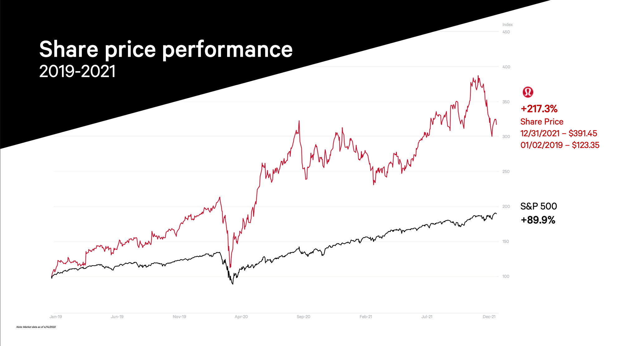 - They plan to build on their successful marketshare momentum - having gained more marketshare than any other athleisure brand in the world in the in the adult active apparel industry between 2019 - 2021. The idea is to intensify the push where there is already momentum rather than trying kindle new movement from a standing start.