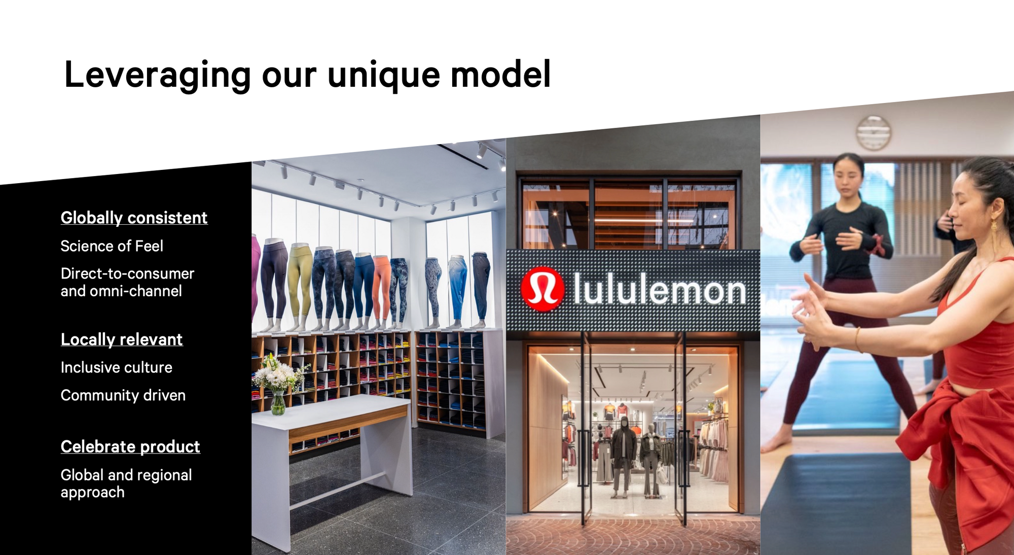 By harnessing their ability to view every new market as culturally unique, as well as their endlessly flexible route-to-market options - Lululemon are taking that strength to new markets with the intention of building a unique relationship in each based on the needs of those communities.