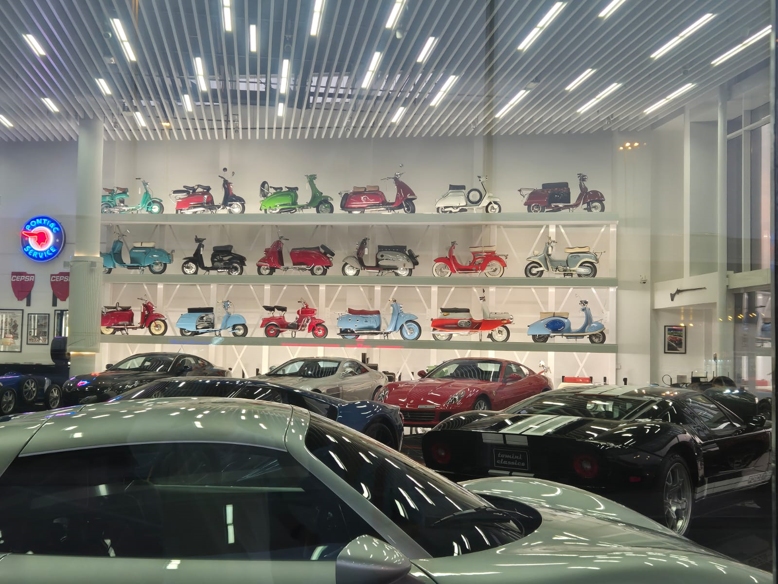 The photo's main focus is the Vespa (and derivatives) collection against the wall; not the Supercars. And, yes, we do have witnesses that there were no further photos taken there. Just this one. For this photographer, the superstars of the show easily outclassed a whole floor's worth of vintage supercars.