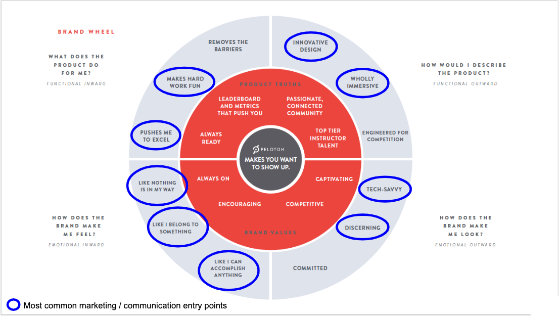 Coming back to the Brand Wheel - the essence of the brand is so neatly captured in this simple framework used by Peloton.