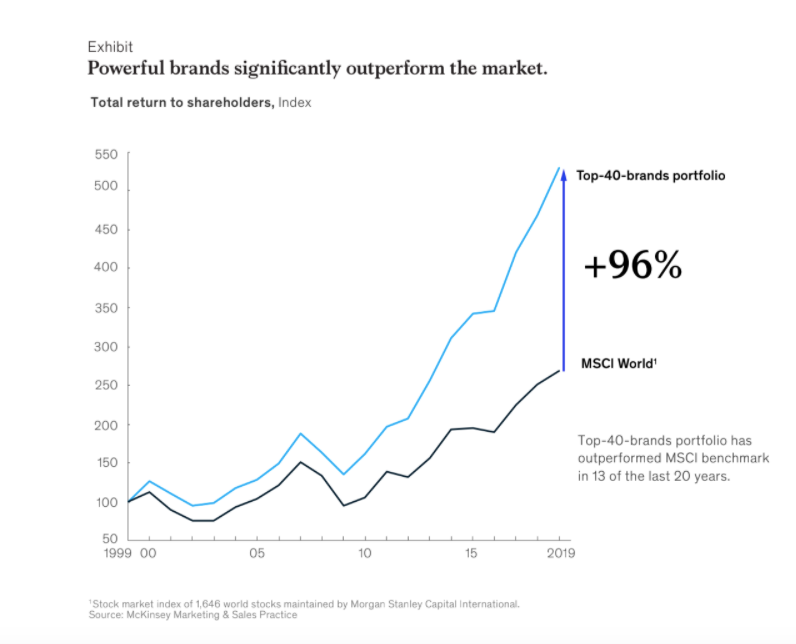 Similarly, companies that focus on leveraging creativity and innovation to build great brands are also more recently radically outperforming those with less of a focus on brand building, exponentially.