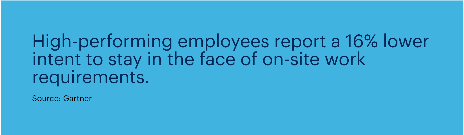Over the last 12 months, 63% of HR leaders report an increase in expectations for employees to return to the office. Many organizations who have encouraged onsite work, but see low compliance, are resorting to RTO mandates. But 74% of HR leaders cite these mandates as a source of conflict.