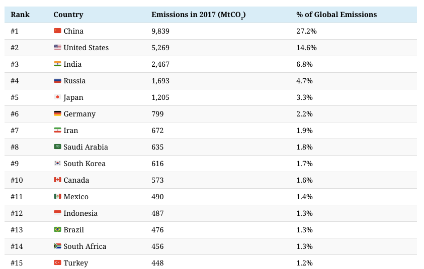 Just three countries - China, the United States and India - account for almost half the world’s emissions.