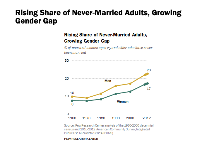 “Most American women hope to marry but current shortages of marriageable men—men with a stable job and a good income—make this increasingly difficult, especially in the current gig economy of unstable low-paying service jobs,” said lead author Daniel T. Lichter, PhD, of Cornell University. “Marriage is still based on love, but it also is fundamentally an economic transaction. Many young men today have little to bring to the marriage bargain, especially as young women’s educational levels on average now exceed their male suitors.”' - via