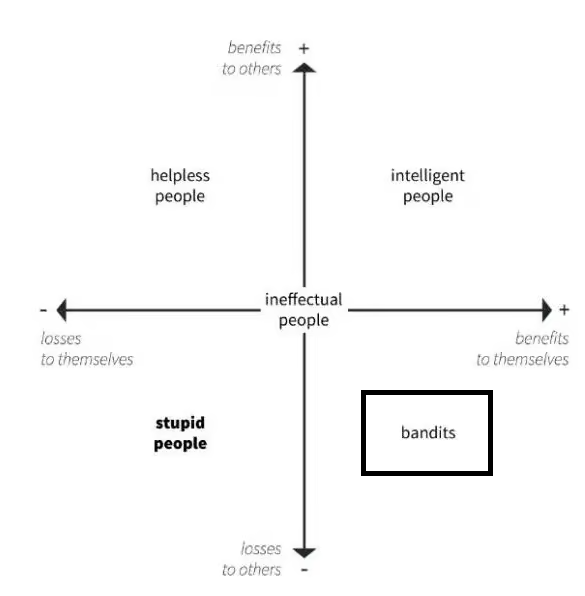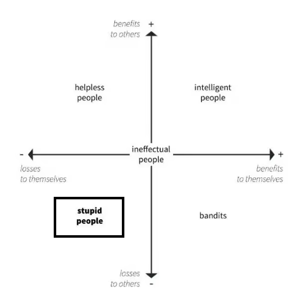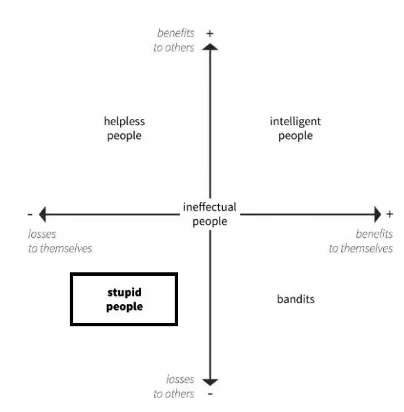 In his thesis Economic stupidity has nothing to do with a person's lack of intelligence.