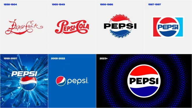 Design-wise the Pepsi logo has kind-of followed whatever design trend was 'trendy' at the time - and as a result the image of the brand (at least in our opinion) dwindled down into nothingness.