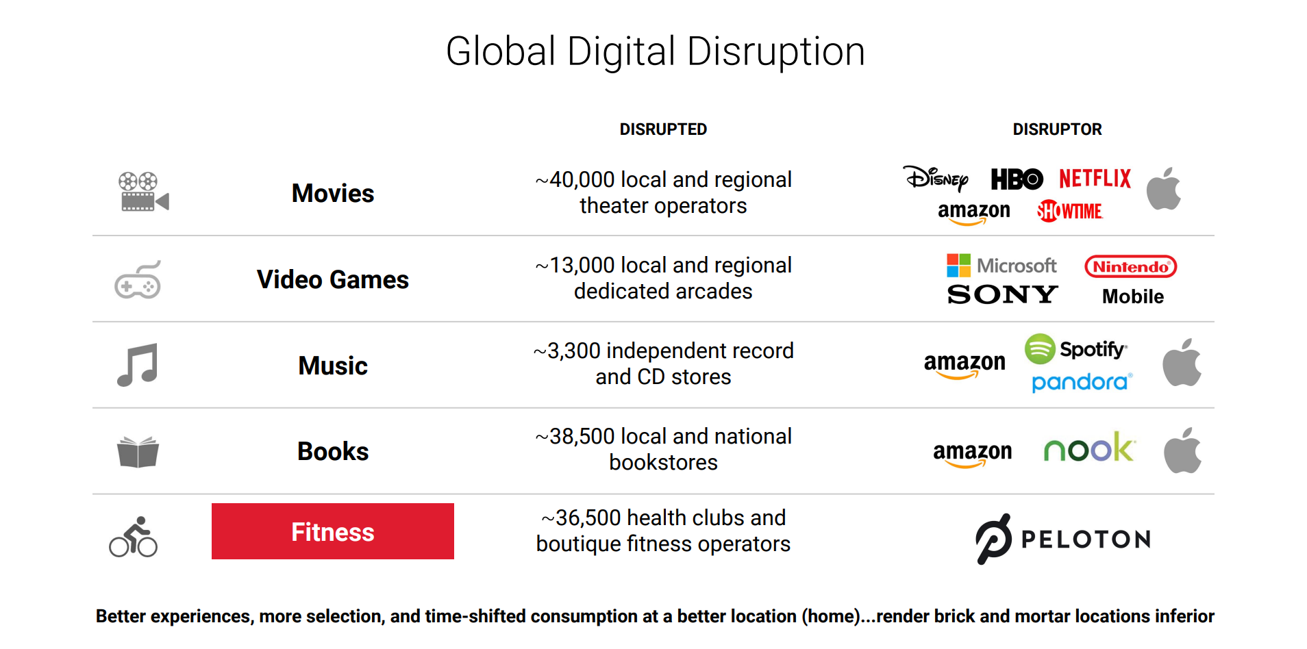 Offering an exercise service that is far more expensive than existing health and fitness options is not going to disrupt the category; you may sign up subscribers at first thanks to hype and lots of positive PR, but the Peloton idea is not one that radically redefines how the category has traditionally been serviced.
