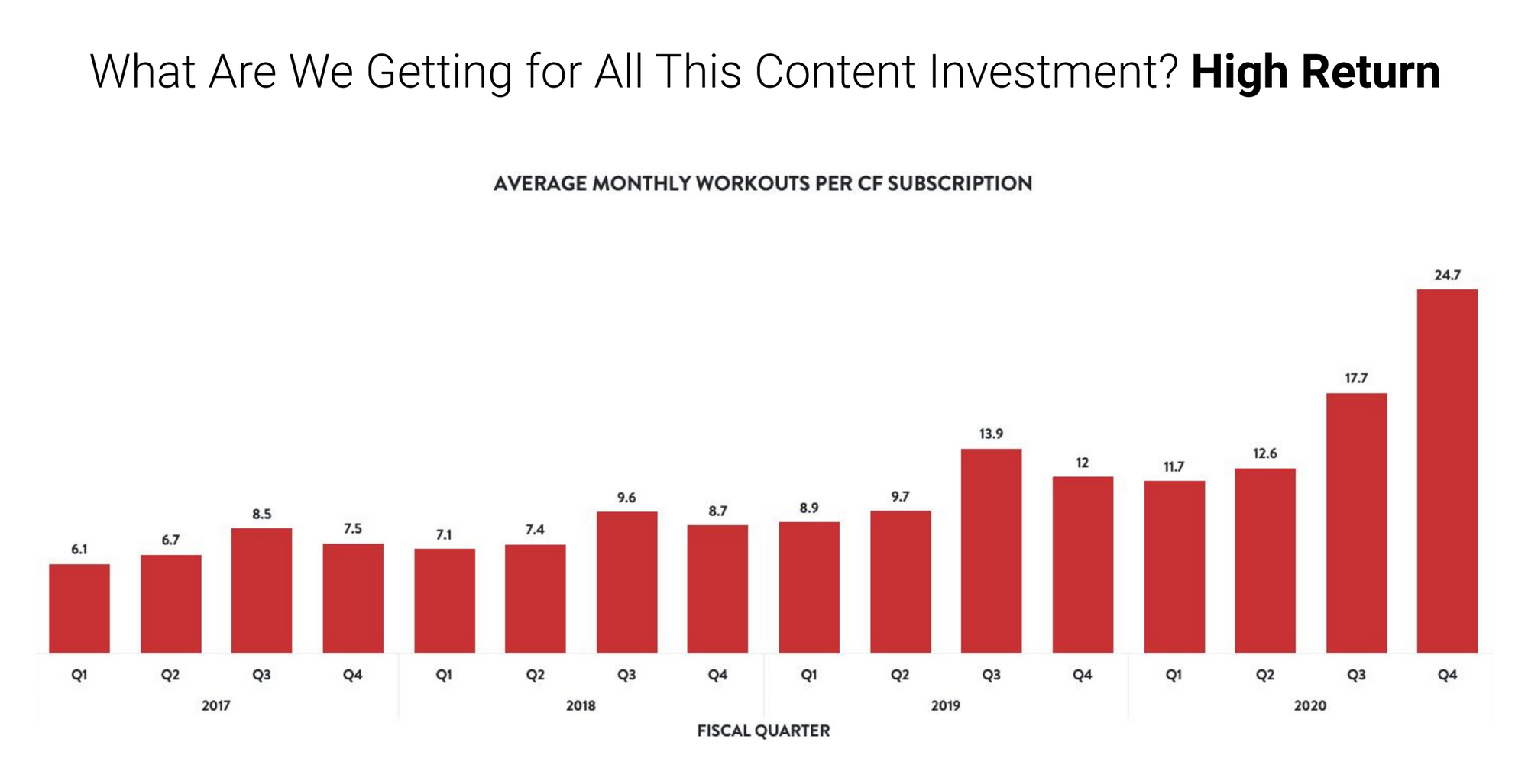 They do have a lot of subscribers who are paying $12.99 a month to get their unique content. They do still sell quite a few treadmills and exercise bikes and generate lots of revenue, but all of this is just not good enough considering how highly-geared they are.