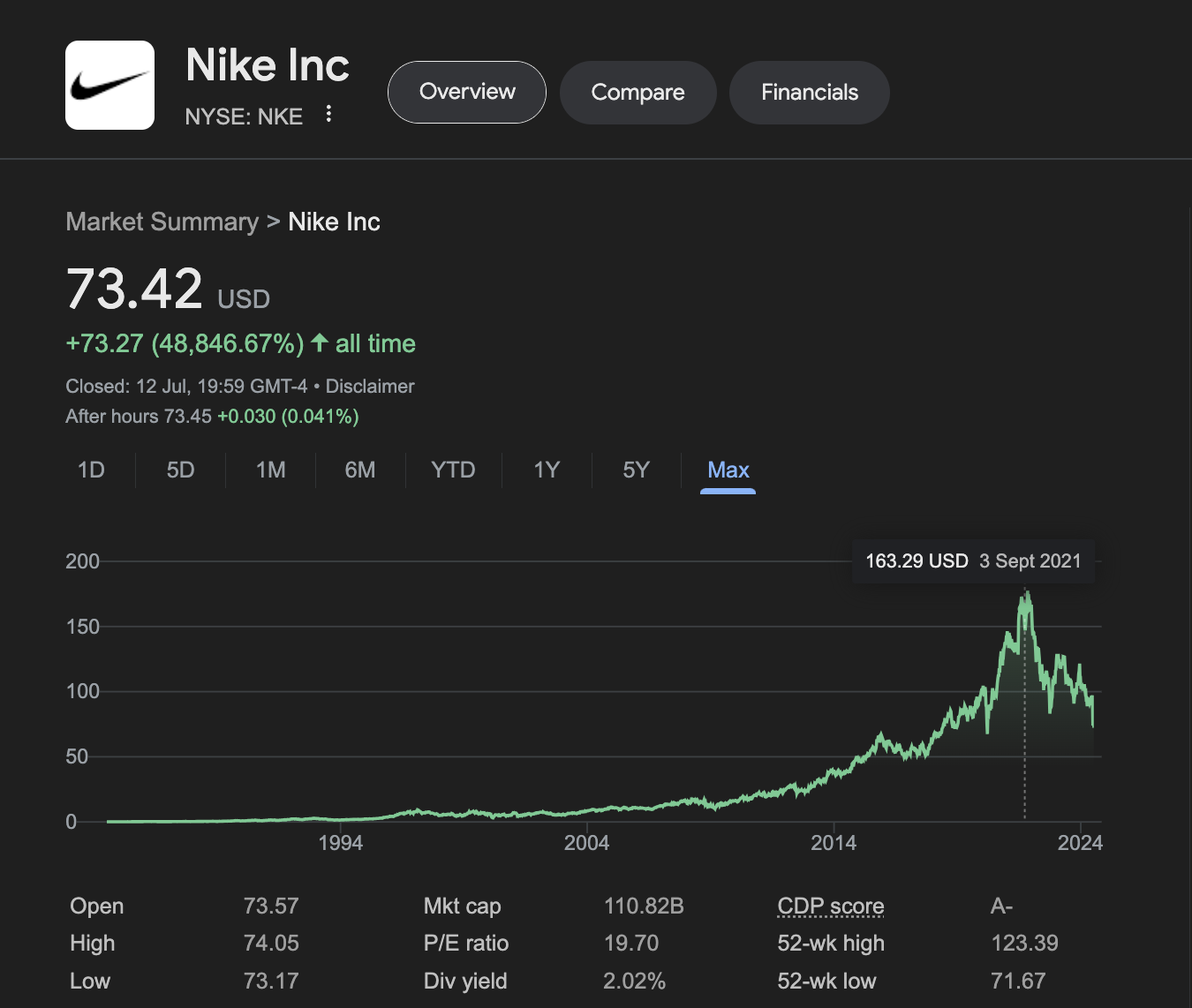 If you're a holder of the company's script you'll be swearing like a drunk sailor at the moment with the share prices currently half of what it was just three years ago. The value destruction here is staggering and apparently all the blame needs to be directed at the Nike executive team.