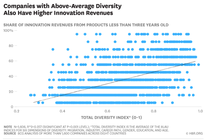 In a study done by Rocio Lorenzo and Martin Reeves which was written about a few years ago in the Harvard Business Review - the two showed the correlation between company leadership that was diverse and higher levels of innovation and better profitability: