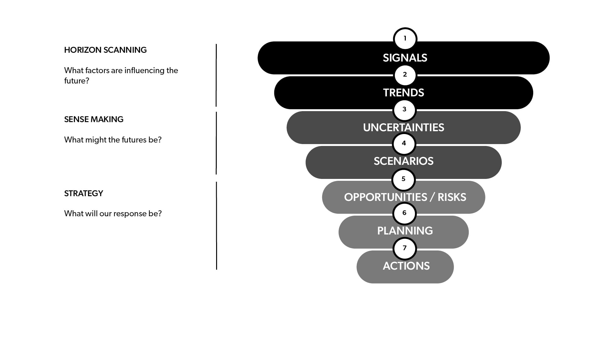 There are many different approaches to scanning, but experience has fine-tuned our approach towards a structure which works well, particularly for business clients that are intent on improving their approach to innovation.